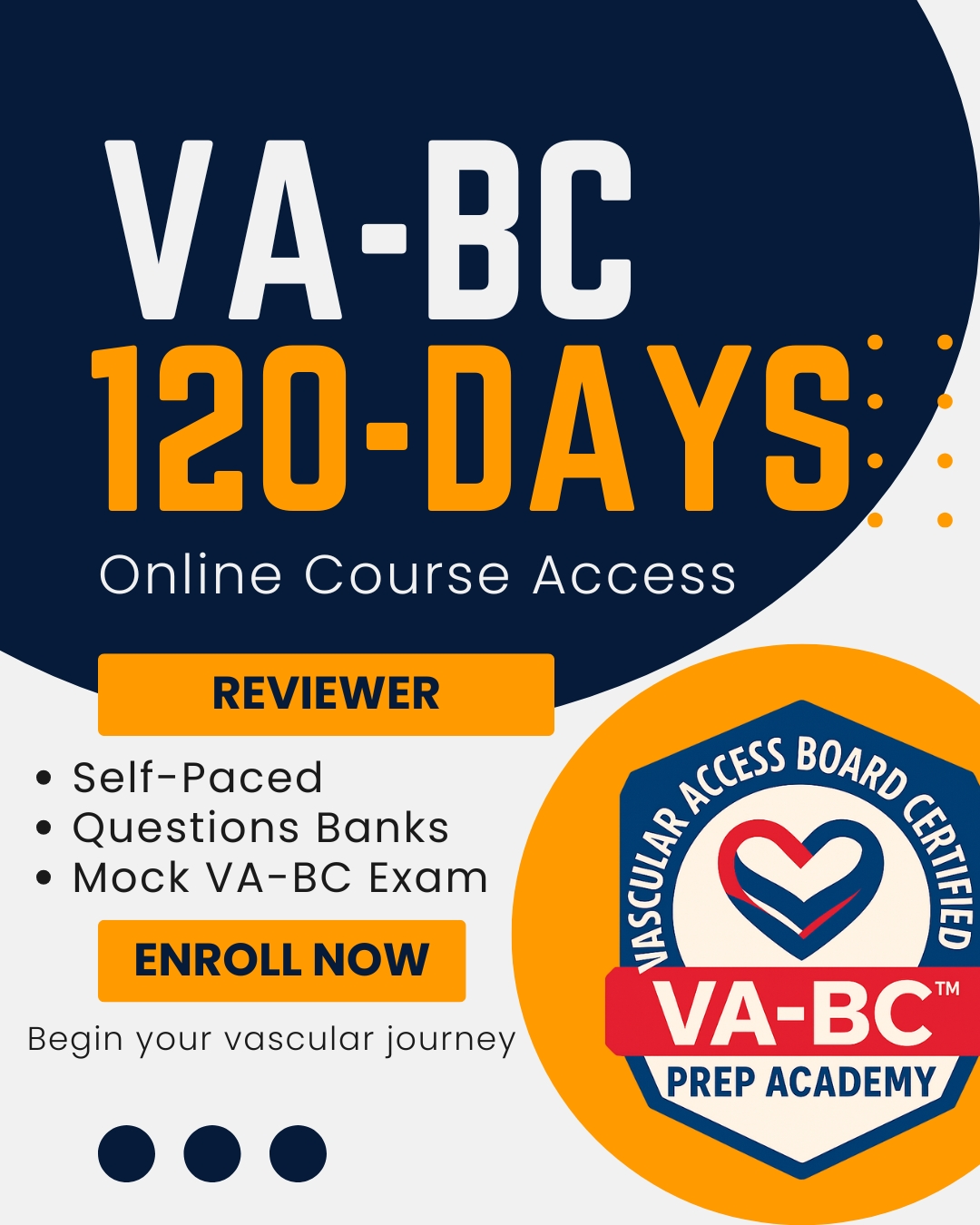 Prepare with confidence for your VA-BC (Vascular Access Board Certification) exam using our 120-day online prep access. This program is designed for nurses, clinicians, and vascular access professionals who need flexible, structured, and results-driven preparation for the VA-BC credential.